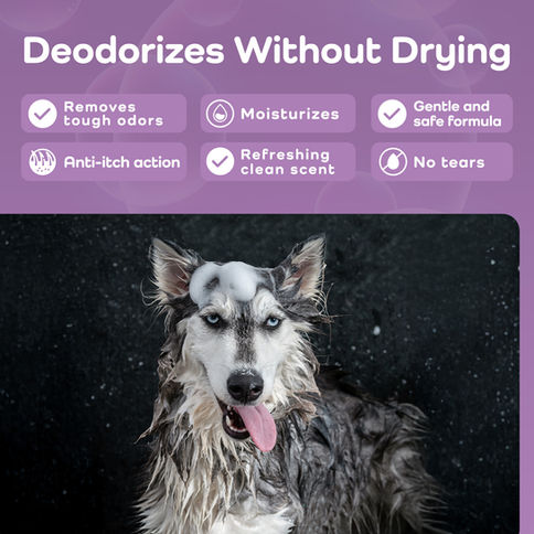 שמפו עדין להרגעה וריכוך, המיועד במיוחד לכלבים עם פרווה כפולה הזקוקה לניקוי יסודי ועדין.